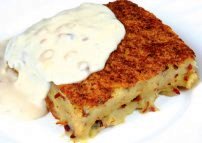 Sirva quente e coma com creme de leite fresco sobre os pedaços.