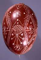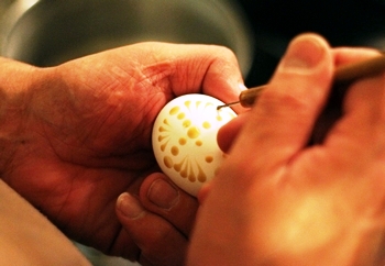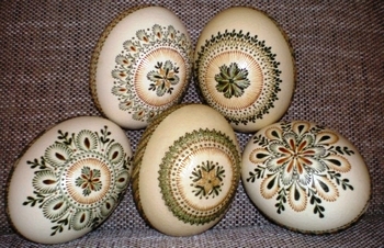Alguns eram cozidos em uma cor única, alguns eram decorados com diversos padrões. São feitos com motivos variados, desenhados com cera quente ou raspando-se a casca colorida do ovo. Os motivos são muito primaveris: sol estilizado, folhas de arruda, pinheirinhos, passarinhos, pés de galinha etc.