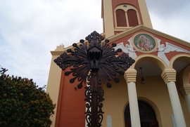 No lado esquerdo do adro da igreja havia uma cruz em estilo lituano que sofreu a ação do tempo e de cupins e atualmente está em reforma.