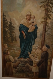 As pinturas remanescentes, no teto da igreja são do artista lituano Antanas Navickas, imigrante lituano de pós segunda guerra. A Descida da Cruz, a Última Ceia, os Apóstolos nos Campos de Trigo e Nossa Senhora de Siluva, na parte central do teto, são expressões de sua arte. A aparição de Nossa Senhora de Siluva, na Lituânia, foi em 1608 – a primeira aparição na Europa. Conta a história que esta aparição evitou que o protestantismo, em franca propagação na Europa, entrasse na Lituânia. Na lateral direita há o quadro de Nossa Senhora de Aušros Vartai – Porta da Aurora, cuja capela está sobre um dos pórticos medievais da capital da Lituânia, Vilnius. Na lateral esquerda está o quadro de São Casimiro, pintado pela artista Dal. São Casimiro (1458-1484), padroeiro da Lituânia, é um príncipe lituano que abdicou dos luxos da corte e prazeres do mundo e optou por riquezas espirituais. Tinha grande devoção a Nossa Senhora. Morreu jovem, modelo de virtudes, é também padroeiro da juventude lituana. As estações da Via Sacra, nas paredes da igreja, são da artista plástica Gracie, que morou e deu aulas de pinturas no bairro.